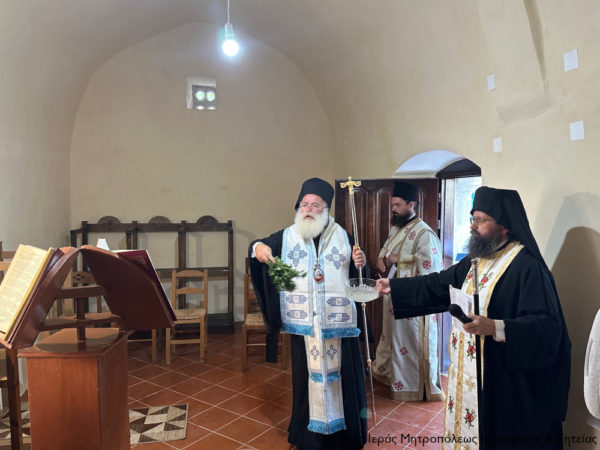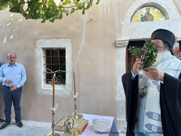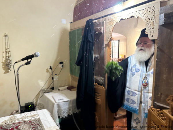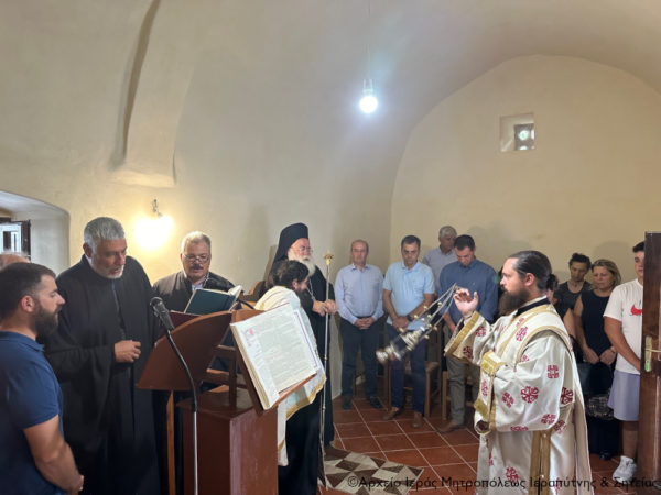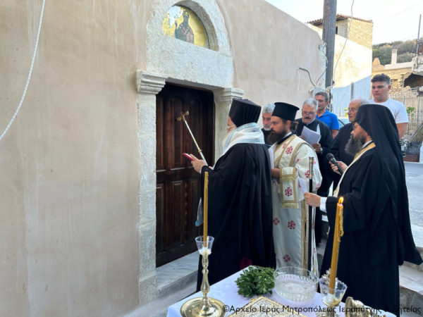 Ο Σεβασμιώτατος, αφού μίλησε στην ιστορία του ναού, ο οποίος, όπως τόνισε, χρονολογείται πριν από την Τουρκοκρατία κατά τους ειδικούς αρχαιολόγους, αναφέρθηκε στις εργασίες συντήρησης και ανακαίνισης των εσωτερικών και εξωτερικών επιχρισμάτων του ναού καθώς και στην αντικατάσταση του εφθαρμένου κωδωνοστασίου με νέο μονόλοβο πέτρινο καμπαναριό.