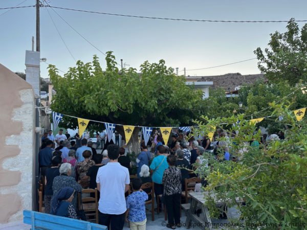 Εκκλησιάσθηκαν εκτός από τον Δήμαρχο Ιεράπετρας κ. Εμμανουήλ Φραγκούλη και τους συνεργάτες του, η Πρόεδρος της Τοπικής Κοινότητας κ. Mαρία Κοκκινάκη, οι ενορίτες και άλλοι ευσεβείς χριστιανοί της περιοχής της Παχείας Άμμου, οι οποίοι μετά τη διανομή του άρτου από τον Σεβ. Μητροπολίτη κ. Κύριλλο έλαβαν το κέρασμα της Ενορίας Βασιλικής στο προαύλιο του ναού, που αποτελεί μέρος της όμορφης και γραφικής πλατείας του ιστορικού χωριού με τον μοναδικό ίσκιο που προσφέρουν οι πολλές μουρνιές.