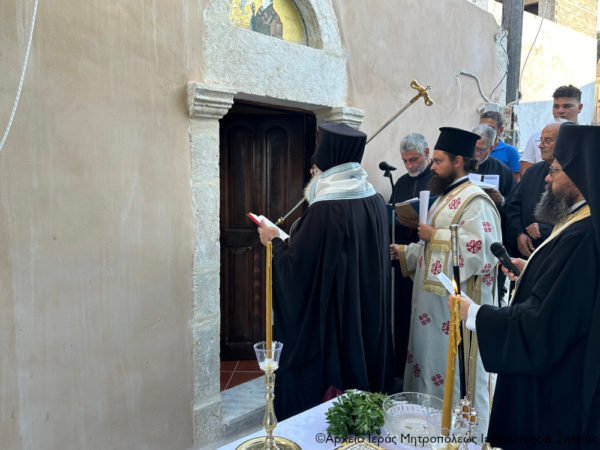Με τη δέουσα ιεροπρέπεια και σύμφωνα με την εκκλησιαστική τάξη το απόγευμα του Σαββάτου 3 Αυγούστου 2024 τελέσθηκαν από τον Σεβ. Μητροπολίτη Ιεραπύτνης και Σητείας κ. Κύριλλο τα Ιερά Θυρανοίξια του ανακαινισμένου Ιερού Ναού Αγίου Σπυρίδωνος της Ενορίας Βασιλικής Ιεράπετρας.