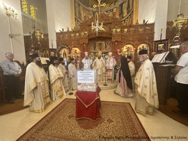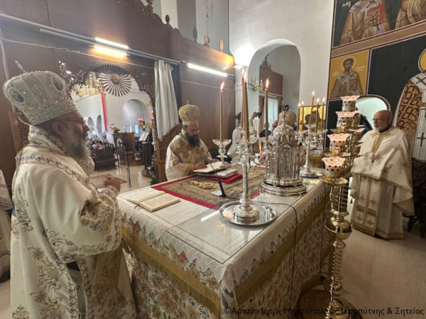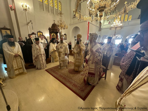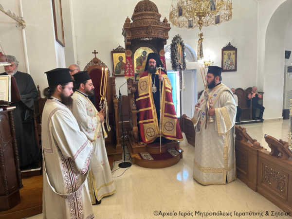 Στην ακολουθία του Όρθρου χοροστάτησε ο Σεβασμιώτατος Μητροπολίτης Πέτρας και Χερρονήσου κ. Γεράσιμος, ο οποίος και προεξήρχε της τρισαρχιερατικής Θείας Λειτουργίας που ακολούθησε. Συλλειτούργησαν ο Σεβασμιώτατος Μητροπολίτης Ρεθύμνης και Αυλοποτάμου κ. Πρόδρομος και ο Σεβασμιώτατος Μητροπολίτης Ιεραπύτνης και Σητείας κ. Κύριλλος, ενώ τον θείο λόγο κήρυξε επίκαιρα ο Σεβασμιώτατος Μητροπολίτης Πέτρας και Χερρονήσου κ. Γεράσιμος.