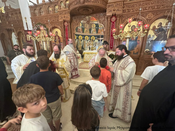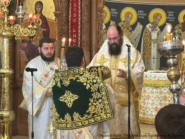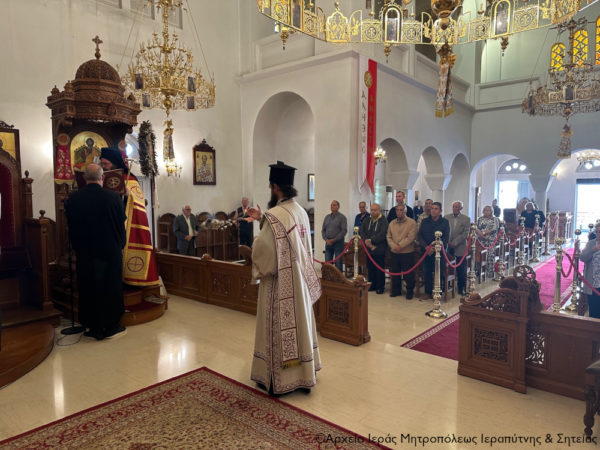 Στην Θεία Λειτουργία έλαβαν μέρος ο Πανοσιολ. Αρχιμανδρίτης Αμβρόσιος Σκαρβέλης, Πρωτοσύγκελλος της Ιεράς Μητροπόλεως, ο Πανοσιολ. Αρχιμανδρίτης Πορφύριος Αγγελάκης, Εφημέριος και προϊστάμενος του πανηγυρίζοντος ναού, ο εξ Ιεραπέτρας καταγόμενος Αιδεσιμολ. πρωτ. Ιωάννης Δελημπαλτάς, Εφημέριος της Ιεράς Μητροπόλεως Κορίνθου, ο συνταξ. Αιδεσιμ. πρωτ. Μιχαήλ Ξυδιανός, ο Αιδεσιμ. Ιερεύς Γεώργιος Λογκάκης και οι Διάκονοι Κωνσταντίνος Ζουμπεράκης, της Ιεράς Μητροπόλεως Ρεθύμνης και Αυλοποτάμου, Γεώργιος Αλέξης, της Ιεράς Μητροπόλεως Πέτρας και Χερρονήσου, και Θεμιστοκλής Μπεϊνας, της Ιεράς Μητροπόλεως Ιεραπύτνης και Σητείας.