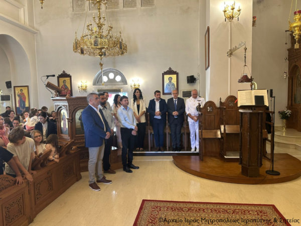 Εκκλησιάσθηκαν ο Δήμαρχος Ιεράπετρας κ. Εμμανουήλ Φραγκούλης, η Βουλευτής Λασιθίου κ. Κατερίνα Σπυριδάκη, ο Αντιπεριφερειάρχης Λασιθίου κ. Ιωάννης Ανδρουλάκης, ο Πρόεδρος του Δημοτικού Συμβουλίου και Διοικητής του Αστυν. Τμήματος Ιεράπετρας κ. Νικόλαος Τζουμάκας, οι Αντιδήμαρχοι κ. Γεώργιος Κουγιουμουτζάκης, κ. Μιχαήλ Μπαχλιτζανάκης και κ. Μαρίνα Αχλάτη, ο Λιμενάρχης Ιεράπετρας κ. Ιωάννης Παπαδάκης, ο Διοικητής του Τμήματος Ασφαλείας Ιεράπετρας κ. Νεκτ. Φρονιμάκης οι δημοτικοί σύμβουλοι κ. Νικ. Παπαδάκης και Κωνσταντίνος Αστροπεκάκης, η Γενική Γραμματέας του Δήμου κ. Μαρία Φραντζεσκάκη κ.α.