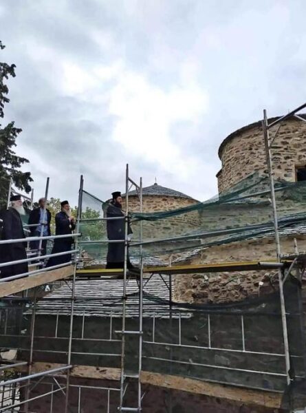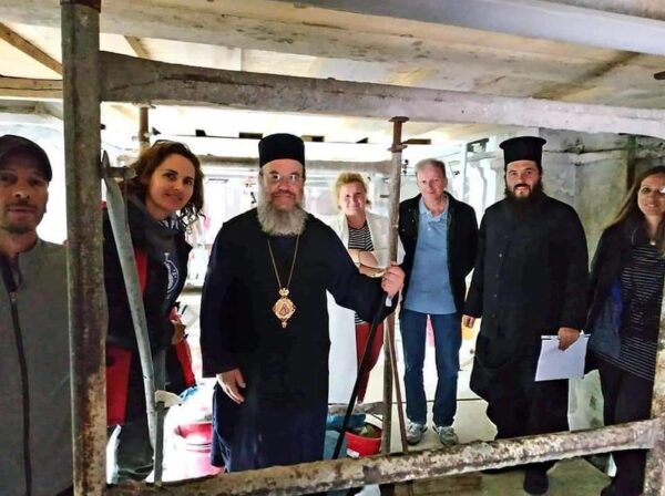 Τό ἒργο ἐπιλαμβάνεται ὡς φορέας ὑλοποιήσεως τό Ὑπουργεῖο Πολιτισμοῦ, ὑπό τή λαμπρά διεύθυνση τῆς Προϊσταμένης τῆς 10ης Ἐφορείας Ἀρχαιοτήτων, Ἀρχαιολόγου κας Μαρίας Τσάπαλη καί τῶν ἐκλεκτῶν συνεργατῶν της. Τό μεσημέρι, λοιπόν, ὁ Σεβασμιώτατος, παρόντος τοῦ Ἐφημερίου Αἰδ. Οἰκ. π. Γεωργίου Τσιπλακίδη, ἀπήλαυσε τίς καίριες παρεμβάσεις καί τίς σωστικές ἐργασίες πού λαμβάνουν χώρα στό ὑπέροχο αὐτό βυζαντινό μνημεῖο, μέ ὃ,τι πιό πεπειραμένο προσωπικό καί συνεργάτες διαθέτει ἡ Ἐφορεία. Τόν Σεβασμιώτατο ὑπεδέχθη ὁ εὐγενέστατος καί ἐμπειρότατος Ἀρχαιολόγος κ. Ἰωάννης Νιαούρης, στενός συνεργάτης τῆς κας Τσάπαλη καί ἐκ τῶν διευθυντικῶν στελεχῶν τῆς Ὑπηρεσίας καί μαζί του ὑπερδεκαμελής ὁμάδα συντηρητῶν καί τεχνιτῶν πού περικοσμοῦν τήν Ἐφορεία Ἀρχαιοτήτων. Ἓνα μελίσσι ἐργατικότητος καί ἒσωθεν καί ἒξωθεν τοῦ Ναοῦ φρόντιζε τά πάντα νά γίνουν στήν ὣρα τους καί στό μέτρο τοῦ ἀνθρωπίνως δυνατοῦ καί ὡραίου.