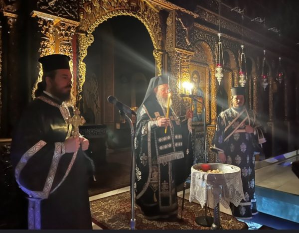 Την Α’ Εσπερινή Προηγιασμένη Θεία Λειτουργία των Τιμίων Δώρων τέλεσε χθες στον Ιερό Μητροπολιτικό Ναό Αγίου Στεφάνου Αρναίας, προηγηθείσης της Θ΄ Ώρας, ο Σεβασμιώτατος Μητροπολίτης Ιερισσού, Αγίου Όρους και Αρδαμερίου κ. Θεόκλητος, συμπαραστατούμενος από τους Διακόνους του π. Νικόλαο Τσεπίση και π. Νικόδημο Κωτινούδη.