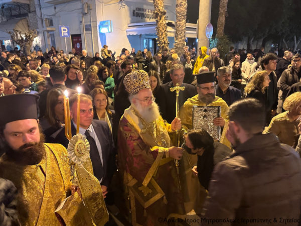 Κατά τη συνάντηση των Ενοριών της πόλης, που συμμετείχε πλήθος πιστών, αναπέμφθηκε δέηση μπροστά από το παλαιό Δημαρχείο της Ιεράπετρας και ο Σεβασμιώτατος κ. Κύριλλος ευχήθηκε εγκάρδια σε όλους καλή ανάσταση, χρόνια πολλά και ευλογημένα, με υγεία, δύναμη, ελπίδα, απαντοχή και τη χάρη του σταυρωθέντος, παθόντος και ταφέντος Κυρίου μας Ιησού Χριστού, αλλά και η Ανάστασή Του που σε λίγο θα εορτάσουμε να σηματοδοτήσει την πνευματική ανάσταση όλων μας.
