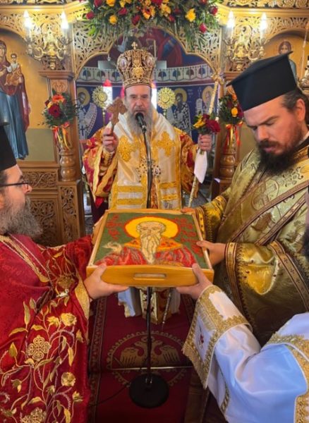 Την κυριώνυμο ημέρα της Πανήγυρης των Ακολουθιών του Όρθρου και της Θείας Λειτουργίας προέστη ο Μητροπολίτης Ιερισσού κ. Θεόκλητος, πλαισιούμενος από τον δραστήριο Εφημέριο της Ενορίας Αιδ. Πρωτ. π. Χρήστο Μήτσιου, τους Αιδ. Οικ. π. Αθανάσιο Κούκο Αρχιερατικό Επίτροπο Ζαγκλιβερίου και Περιχώρων, π. Μιχαήλ Γιανάκοβ και τους Διακόνους π. Κωνσταντίνο Παζιώτη (Ι.Μ. Πολυανής & Κιλκισίου), π. Νικόλαο Τσεπίση και π. Νικόδημο Κωτινούδη.