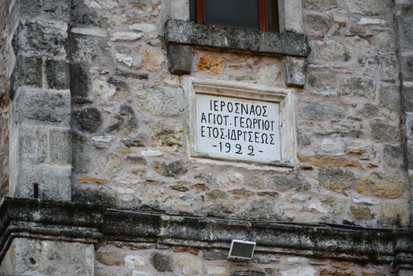 Επιχείρησε πετυχημένα και αναφέρθηκε στην ιστορική πορεία της Παλαιοχώρας ανά τους αιώνες, στην προσφορά του Τόπου στην Ιστορία και τη Ρωμιοσύνη και τέλος έπλεξε το εγκώμιο εκείνων που έχτισαν το κόσμημα του Ιερού Ναού του Αγίου Γεωργίου πέτρα προς πέτρα, κεραμίδι με κεραμίδι, αγιογραφία με αγιογραφία, πολυέλαιο με πολυέλαιο και ιερά σκεύη με ταπείνωση.