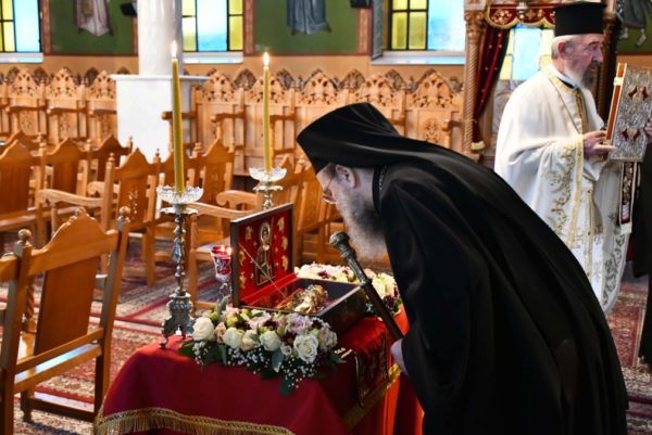 Από τον Μοναστικό Οίκο «Η Χαρά των Θλιβομένων» που έχει προεστώτα τον Πρωτοσύγκελλο Παν. Αρχιμ. π. Ιγνάτιο Ριγανά, μετεφέρθηκε το Ιερό Λείψανο του Αγίου Γεωργίου, δηλαδή Ιερά Αποτμήματα της δεξιάς παλάμης Του, με παράκληση του π. Χαραλάμπη, ιερό θησαύρισμα που προσεκόμισε στην Κωμόπολη ο Παν. Αρχιμ. π. Σπυρίδων Τόψης, την Παρασκευή 14η Οκτωβρίου.