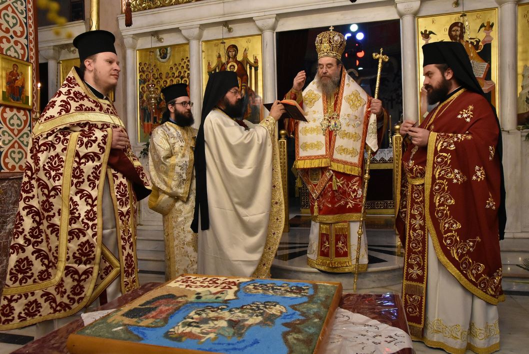Ἀνήμερα στή γιορτή, τοῦ Ὂρθρου καί τῆς Θείας Λειτουργίας προέστηὁ Σεβ. Μητροπολίτης κ. Θεόκλητος πλαισιούμενος ἀπό τούς Παν. Ἀρχιμ. π. Κυριακό Χολέβα, π. Χριστόδουλο Στυλιανό, π. Παΐσιο Σουλτανικᾶ, π. Βαρθολομαῖο Χατζόγλου καί π. Ἀναστάσιο Τοπούζη τόν ἀεικίνητο καί τιμώμενο ἀπό ὂλους ἐφημέριο τοῦ Ναοῦ, τούς Αἰδ. Πρωτ. π. Σπυρίδωνα Μποτονάκη ἐκ τῆς Ἱερᾶς Μητροπόλεως Καρπενησίου καί π. Μακάριο Ζωνάρα καί τόν Διάκονο π. Κωνσταντίνο