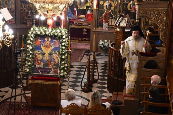 Στην ομιλία του ο Σεβασμιώτατος παρουσίασε στο Εκκλησίασμα το μήνυμα της Εορτής, δηλαδή την Τιμή προς την Υπεραγία Θεοτόκο μέσα στο Πασχαλιάτικο περιβάλλον της Εκκλησίας, μιάς και την ημέρα αυτή η Ορθοδοξία τιμά την ανάμνηση των Εγκαινίων του Ιερού Ναού της Παναγίας μας στην Κωνσταντινούπολη.