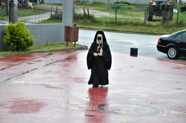Μαζί με τον δραστήριο Πρωτ. π. Βασίλειο Ανυφαντή, τον Προιστάμενο του Ιερού Ναού, προσήλθε και ο κτίτωρ του σεβάσματος τούτου π. Εμμανουήλ και μετά το πέρας της Θ. Λειτουργίας προσήλθε και ο Πρωτ. π. Μακάριος Ζωνάρας που εφημερεύει στον Καθεδρικό Ναό της Παναγίας της Ιερισσού, για να τιμήσει και να χαιρετήσει τον Επίσκοπό του.