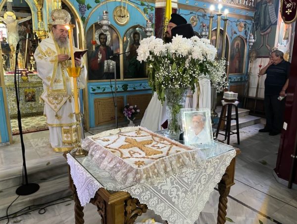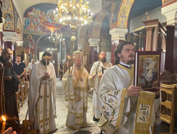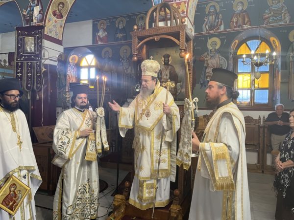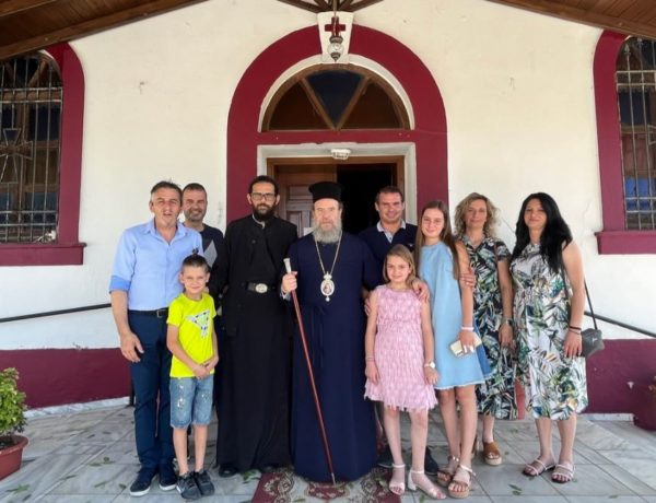 Ο Σεβασμιώτατος συνοδευόταν από τους Διακόνους του π. Νικόδημο Κωτινούδη και π. Νικόλαο Τσεπίση.
