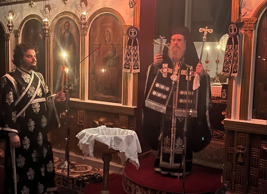 Τον υποδέχθησαν ο Εφημέριος του Ιερού Ναού Αιδ. Οικ. π. Ιωακείμ Περίφανος και ο Αντιδήμαρχος και Εκκλησιαστικός Σύμβουλος κ. Νίκολαος Πανταζίδης, επικεφαλής του Πληρώματος της Ενορίας που προσήλθε προετοιμασμένο να μετάσχη των Αχράντων Μυστηρίων.