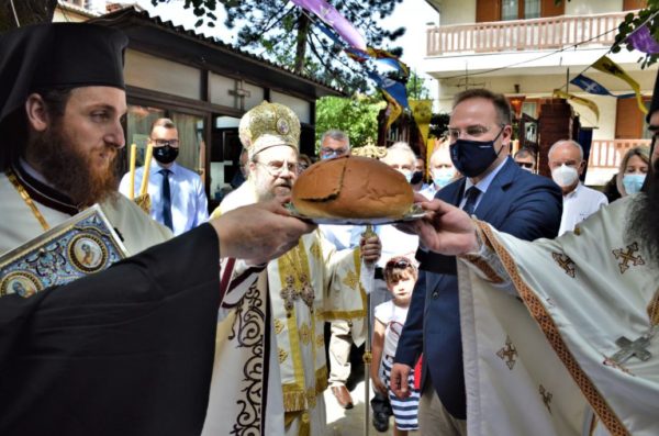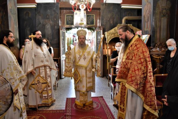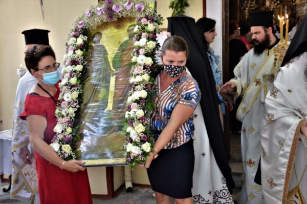 Μετά το πέρας της Θείας Λειτουργίας επακολούθησε λιτανεία της θαυματουργού Εικόνος των Αγίων και των Ιερών Λειψάνων τους ανά την πόλη της Αρναίας.