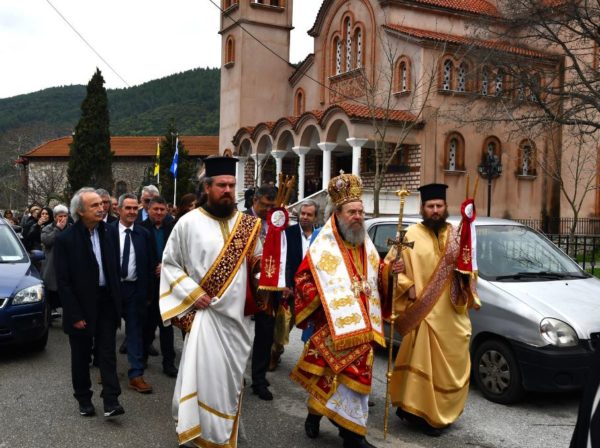 Ο Μητροπολίτης Ιερισσού, Αγίου Όρους και Αρδαμερίου κ. Θεόκλητος, ακολουθούμενος από τον Παν. Αρχιμ. π. Νικόδημο Κωτινούδη και τους Διακόνους του π. Νικόλαο Τσεπίση, π. Δημήτριο Κουρλετάκη και π. Αλέξανδρο Αλιφέρη, μετέβη στον Ιερό Ναό Κοιμήσεως της Θεοτόκου και Αγίων Τεσσαράκοντα Μαρτύρων Γοματίου, καθότι το Εκκλησιαστικό Συμβούλιο του Ναού μετέθεσε την Εορτή των Προστατών του στις 10 Μαρτίου, λόγω Ψυχοσαββάτου.