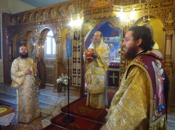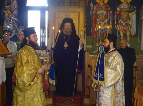 Στον ενοριακό Ιερό Ναό του Οσίου Αθανασίου του Αθωνίτου, που ευπρεπίζεται και αγιογραφείται από την τοπική Ενορία, προσήλθε προσκυνητής και ο Σεβασμιώτατος, για να τιμήσει τη μνήμη του Αγίου Χαραλάμπους.