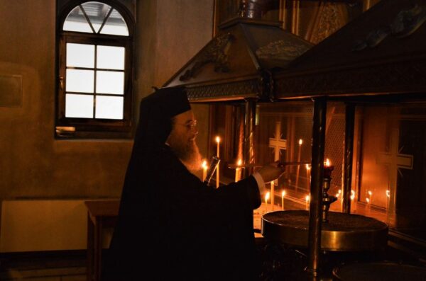 Βεβαίως, λόγω των μέτρων που έχουν ληφθή προς αποφυγήν της διασποράς της πανδημίας του κορωναιού, η Θεία Λατρεία ετελέσθη κεκλεισμένων των θυρών και απόντος παντελώς του ευλογημένου Λαού μας. Τη Θεία Λειτουργία ετέλεσε ο Προιστάμενος του Ιερού Ναού Παν. Αρχιμ. π. Παίσιος Σουλτανικάς, ενώ ο δεύτερος Εφημέριος του Ναού Αιδ. Οικ. π. Γεώργιος Τρικκαλιώτης παρέστη συμπροσευχόμενος και διακονών στο Ιερό Βήμα.