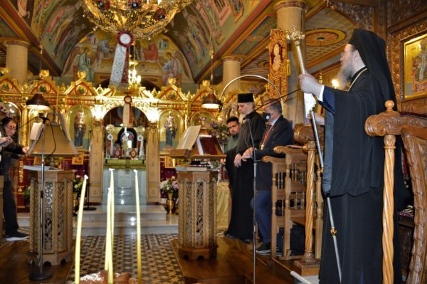 Του πανηγυρικού Εσπερινού χοροστάτησε ο Σεβασμιώτατος Μητροπολίτης Ιερισσού κ. Θεόκλητος πλαισιουμένος από τους Διακόνους του π. Θεόκλητο Παρδάλη και π. Αμφιλόχιο Χάιτα. Τον υπεδέχθη ο Εφημέριος της Ενορίας Αιδ. π. Γεώργιος Κυριάκου, οι Παν. Αρχιμ. π. Βαρθολομαίος Χατζόγλου ο και Αρχιερατικός Επίτροπος της Β΄ Αρχιερατικής Περιφερείας Ιερισσού και Ουρανουπόλεως, π. Παίσιος Σουλτανικάς, π. Μελέτιος Τσόγκας και οι Αιδ. Πρωτ. π. Βασίλειος Ανυφαντής και π. Μακάριος Ζωνάρας.