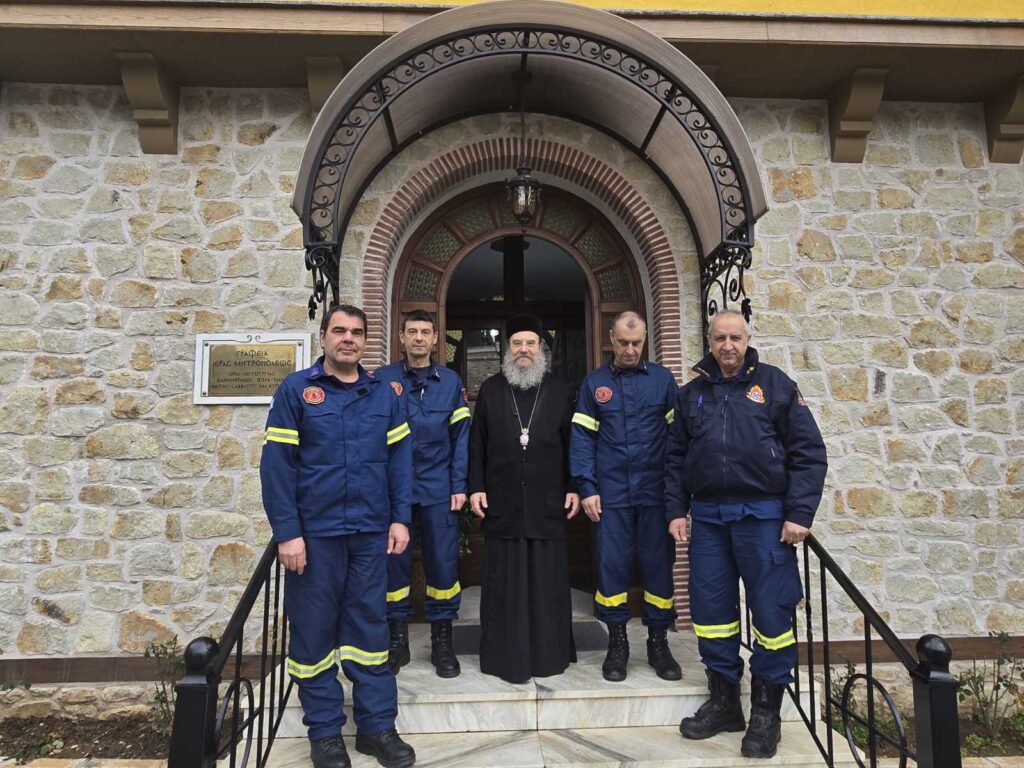 Την Παρασκευή, 13 Φεβρουαρίου 2026, ο Γενικός Επιθεωρητής Πυροσβεστικού Σώματος Βορείου Ελλάδος Αντιστράτηγος κ. Παναγιώτης Μπαθρέλος, επισκέφθηκε εθιμοτυπικώς στην Έδρα του στην Αρναία τον Σεβασμιώτατο Μητροπολίτη κ. Θεόκλητο, πλαισιούμενος από υψηλόβαθμα Στελέχη της Υπηρεσίας, τους κ.κ. Παναγιώτη Πατσιαλή, Διευθυντή Πυροσβεστικών Υπηρεσιών Χαλκιδικής και Δημήτριο Αλεξανδρή, Διοικητή Πυροσβεστικών Υπηρεσιών Σταγείρων – Ακάνθου.