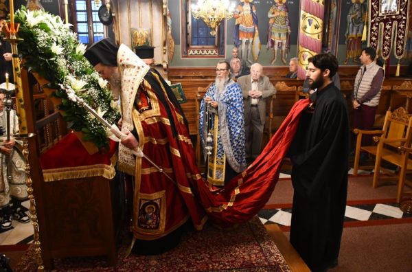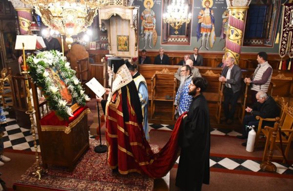 Τον Σεβασμιώτατο πλαισίωσαν ο δραστήριος Εφημέριος της Ενορίας Αιδ. Πρωτ. π. Αργύριος Καραμόσχος και ο Διάκονος π. Νικόλαος Τσεπίσης. Περί το τέλος της Ακολουθίας και αφού επεράτωσε τις υποχρεώσεις του στην Ενορία του Αγίου Γεωργίου της Κωμοπόλεως, προσήλθε στην Σύναξη και ο Αρχιερατικός Επίτροπος της Περιοχής Αιδ. Πρωτ. π. Γεώργιος Σκονδράνης.