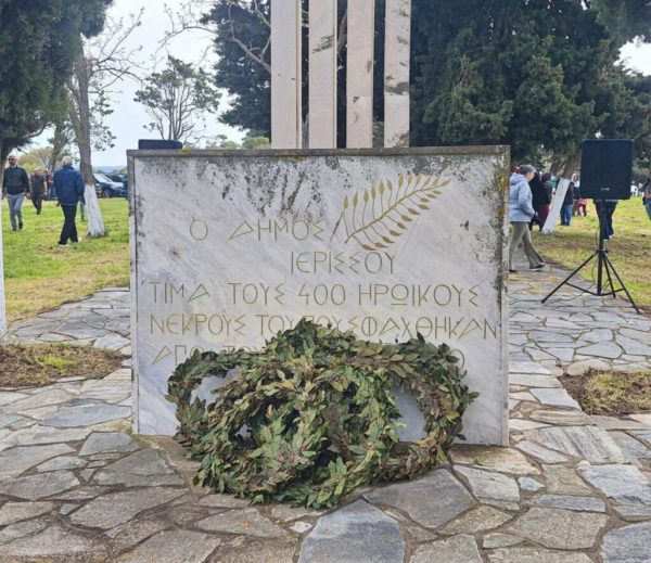 Στη συνέχεια πραγματοποιήθηκε κατάθεση στεφάνων και ομιλία για το ιστορικό της επετείου από τον κ. Παναγιώτη Βάγγο, μαθητή Β’ Λυκείου Ιερισσού, ο οποίος σε σύντομο χρόνο και με λίαν περιεκτικά μηνύματα εξέθεσε υποδειγματικά τη θυσία των Ιερισσιωτών τη Λαμπροτρίτη του 1821.