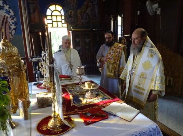 Τήν Κυριακή Α΄ Λουκᾶ, 22α Σεπτεμβρίου τ.ἒ., ὁ Σεβασμιώτατος Μητροπολίτης μας κ. ΘΕΟΚΛΗΤΟΣ ἀκολουθούμενος ἀπό τόν Διάκονό του π. Κωνσταντίνο Ἰσαακίδη, ἐπεσκέφθη τήν Ἐνορία Ἁγίας Κυριακῆς Ὀλυμπιάδος, καθότι τήν ἡμέρα τῆς Πανηγύρεως τῆς Μεγαλομάρτυρος Κυριακῆς δέν μπόρεσε νά εἶναι παρών στή χαρά τῆς τοπικῆς Ἐκκλησίας. Μαζί του βέβαια καί ὁ καλός Ἐφημέριος τῆς Ἐνορίας, Αἰδ. Πρωτ. π. Χαράλαμπος Δουλγκέρης, ὁ ὁποῖος εἶχε ἐνημερώσει τό ποίμνιό του γιά τήν παρουσία τοῦ Ἐπισκόπου. Ὂντως οἱ Ἐνορίτες προσῆλθαν στό κάλεσμα τῆς γλυκόλαλης καμπάνας, μέ ἐπικεφαλῆς τόν Ἀντιδήμαρχο κ. Δημήτριο Κοντογιώργη.
