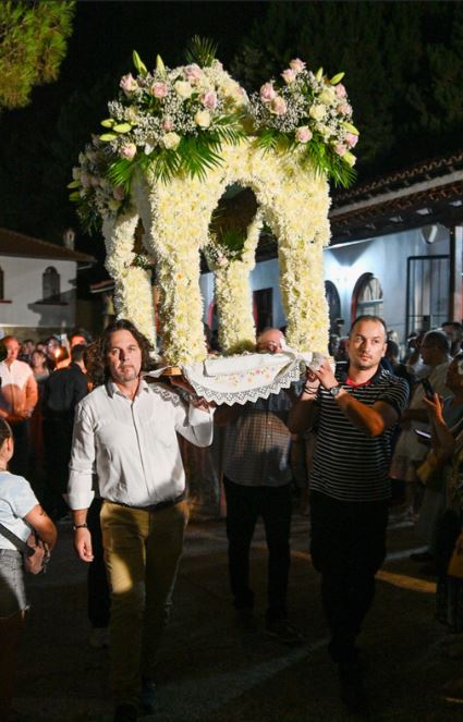 Της πομπής προηγείτο η Φιλαρμονική της Μεγάλης Παναγίας και ακολουθούσε ο Ιερός Κλήρος, ο Ιερός Επιτάφιος, οι Άρχοντες του Τόπου και πλήθος Λαού που προσήλθε από όλες τις γωνιές της Χαλκιδικής τιμώντας τη Χάρη Της.
