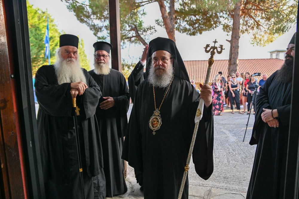 Την παραμονή της Εορτής, Δευτέρα 14η Αυγούστου 2023, στην αίθουσα πολλαπλών χρήσεων των Κατασκηνώσεων της Ιεράς Μητροπόλεως που φιλοξενούνται στο Ιερό Προσκύνημα της Μεγάλης Παναγίας, εψάλη Μέγας Πανηγυρικός Αρχιερατικός Εσπερινός.