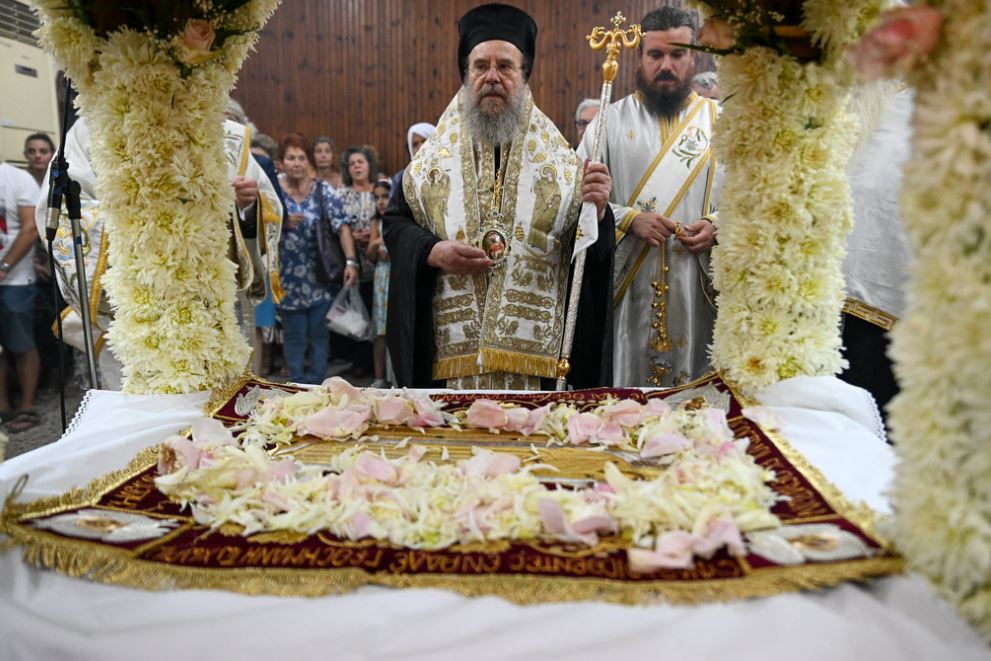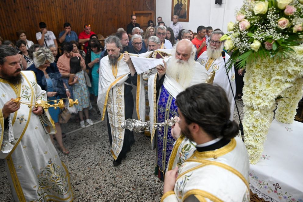 Στο κήρυγμά του ο Σεβασμιώτατος χαρακτήρισε τη Θεοτόκο ως τη Λυδία Λίθο ενότητος του Ελληνικού Λαού, ως πικραμένη χαρά και ελπίδα της Ρωμιωσύνης κατά τον Φώτη Κόντογλου και κυρίως ως τη Μάνα του Κόσμου που προήλθε από τις λαγόνες Της και ενεδύθη εξ αιτίας Της Χριστό, Τούτον δε Εσταυρωμένον και Αναστάντα, αφού στην Τιμία Γαστέρα Της δάνεισε τον Κύριο, ενέδυσε τον Υιό και Λόγο του Θεού με Σάρκα και Οστά, πετυχαίνοντας το ύψιστο εφετό που άνθρωπος μπορεί να επιζητήση ως δώρο από την Αγιοτριαδική Θεότητα: την πληρέστερη δυνατή ένωση Θεού και ανθρώπων, ό,τι δηλαδή επετεύχθη στη Μήτρα Της!