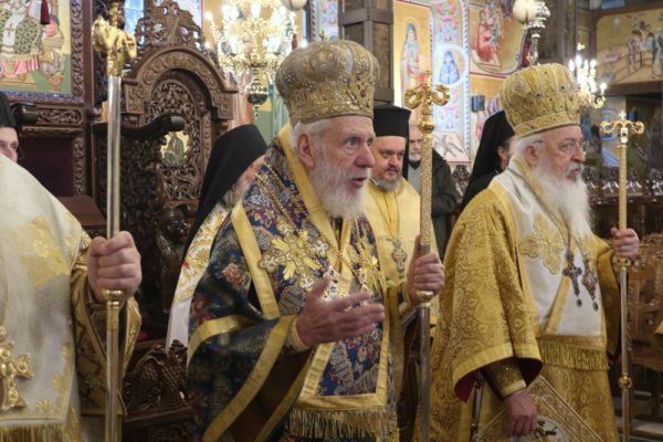 Στη Θεία Λειτουργία συμμετείχαν πολλοί ιερείς και διάκονοι, μοναχοί και μοναχές, υπουργοί, βουλευτές, εκπρόσωποι της Τοπικής Αυτοδιοίκησης και πλήθος πιστών, οι οποίοι προσήλθαν για να ευχηθούν στον εορτάζοντα Ποιμενάρχη τους.