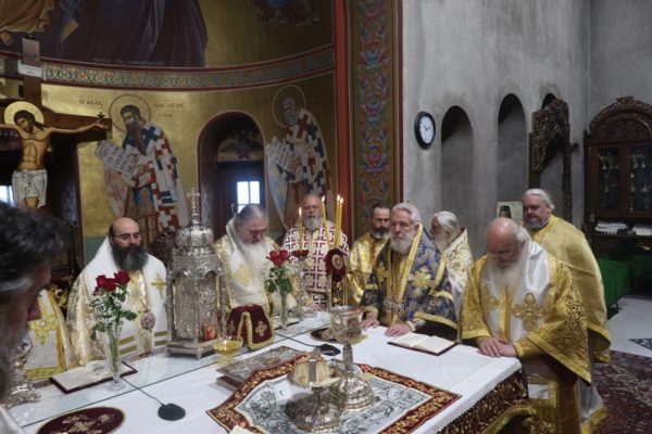 Συλλειτούργησαν οι Σεβασμιώτατοι Μητροπολίτες Κασσανδρείας κ. Νικόδημος, Σερρών κ. Θεολόγος — ο οποίος κήρυξε τον θείο λόγο συνδέοντας τη σημερινή Κυριακή της Τυρινής με τη μνήμη του Αγίου Θεοκλήτου και την εορτή του εορτάζοντος Μητροπολίτη Ιερισσού — Σύρου κ. Δωρόθεος Β΄, Κίτρους κ. Γεώργιος, Καλαμαριάς κ. Ιουστίνος, Κιλκισίου κ. Βαρθολομαίος, καθώς και ο Θεοφιλέστατος Επίσκοπος Τεγέας κ. Θεόκλητος, ο οποίος έφθασε από την Τρίπολη και επίσης εόρταζε.