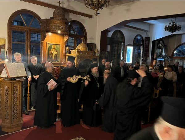 Ο ντυμένος στα χρώματα της Μεγάλης Τεσσαρακοστής Ιερός Ναός επληρώθη απ’ άκρου εις άκρον από τον λίαν ευσεβή Λαό της Ενορίας, με επικεφαλής την Τοπική Σύμβουλο και Πρόεδρο της “Ενσυναίσθησης” κα Εύη Κασαμπαλή.