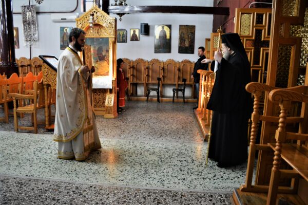 Την Κυριακή του Αντίπασχα, 26 Απριλίου 2020, στην Ενορία της Αγίας Παρασκευής Κάτω Σταυρού ο Σεβασμιώτατος Μητροπολίτης Ιερισσού, Αγίου Όρους και Αρδαμερίου κ. Θεόκλητος ακολουθούμενος από τον Διάκονό του π. Θεόκλητο Παρδάλη τέλεσε την Ακολουθία του Όρθρου και την Αναστάσιμη Θεία Λειτουργία.