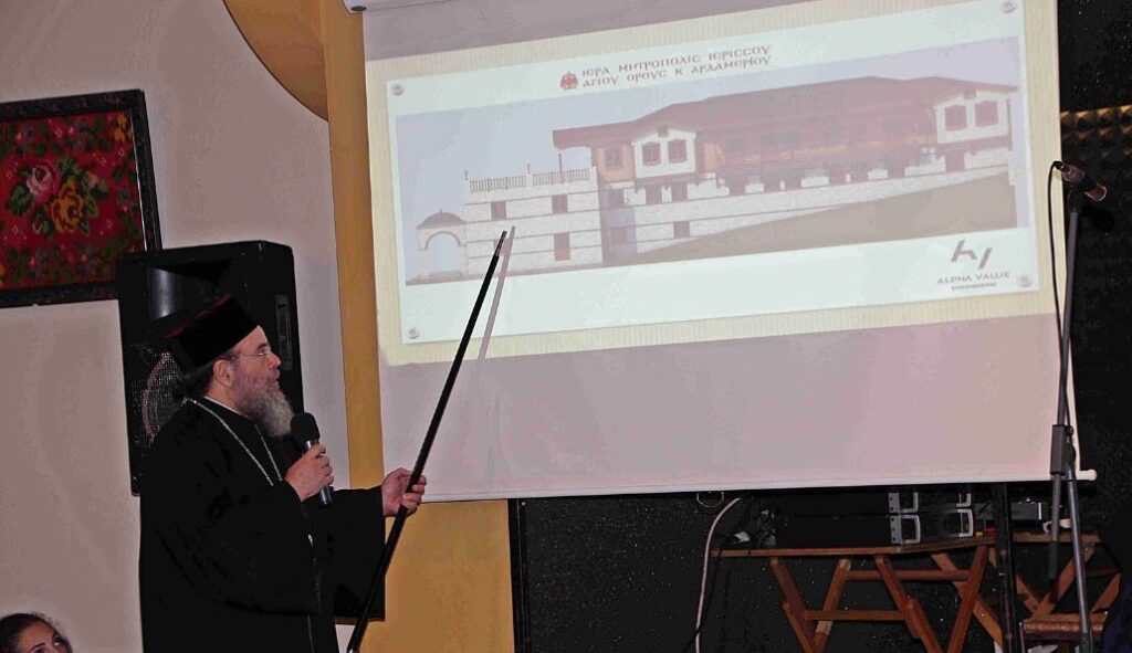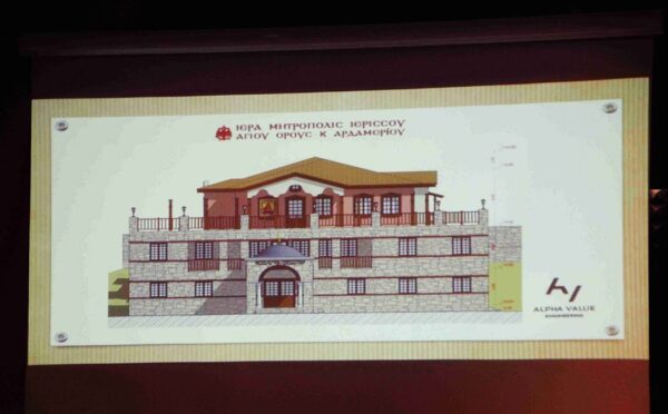 Η πιο ευχάριστη στιγμή για όλους ήταν, όταν ο Σεβασμιώτατος ανακοίνωσε την ανέγερση του νέου Γηροκομείου και κάλεσε την αρχιτέκτονα κ. Καλιρρόη Σκλιοπίδου να παρουσιάσει τη μακέττα του και τα σχέδια.