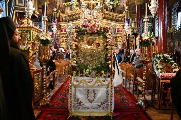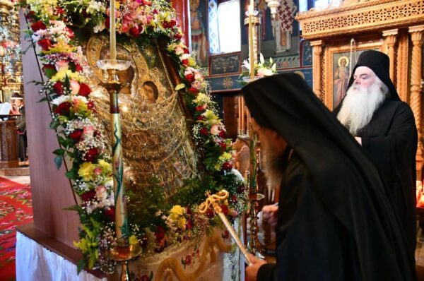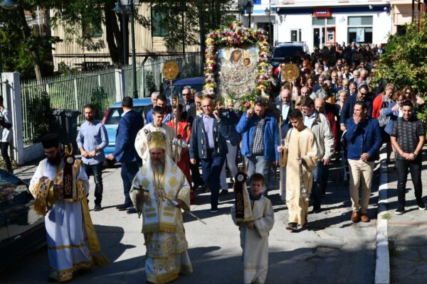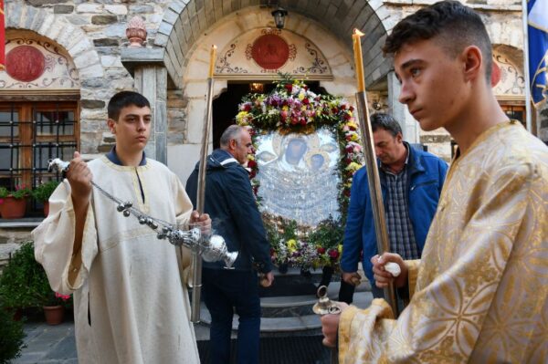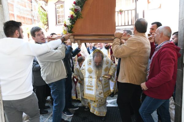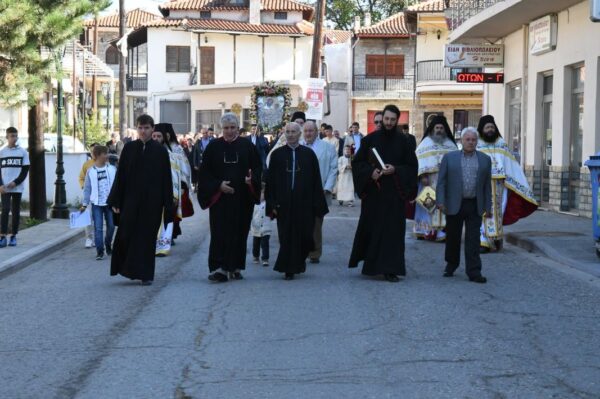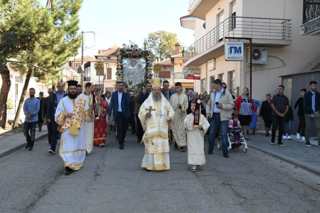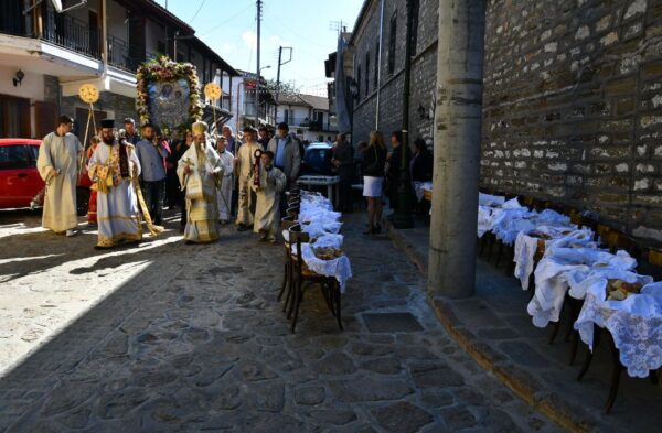 Μετά τό πέρας τῆς Θείας Λειτουργίας ἐπακολούθησε λιτάνευση τῆς θαυματουργοῦ εἰκόνος τῆς Παναγίας τῆς Γοργοϋπηκόου ἀνά τήν Κωμοπόλη τοῦ Παλαιοχωρίου, μέ ἐπιστροφή στόν Ναό τῶν Παμμεγίστων Ταξιαρχῶν, τοῦ ὀποίου τήν ἐξωτερική πέτρινη τοιχοποιΐα, μέ ἐκκίνηση ἀπό τήν πλευρά τοῦ Ἱεροῦ, ἀναπαλαιώνει ὑποδειγματικά καί παραδοσιακά ὁ π. Ἰγνάτιος.