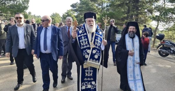 Προεξάρχων της ακολουθίας ήταν ο Σεβασμιώτατος Μητροπολίτης Ιλίου κ. Αθηναγόρας, ο οποίος μάλιστα συνεχάρη όλα τα παιδιά που κολύμπησαν στα κρύα νερά της λίμνης για να πιάσουν τον σταυρό.