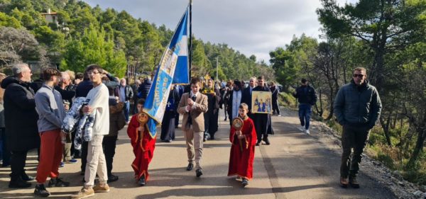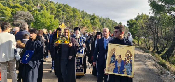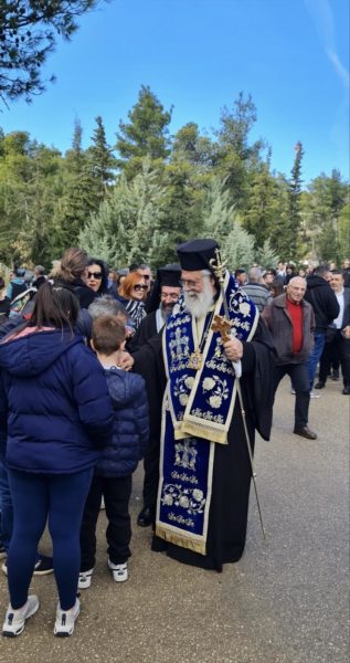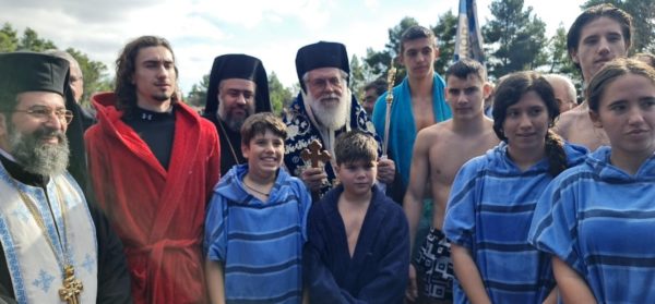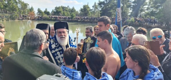 Προεξάρχων της ακολουθίας ήταν ο Σεβασμιώτατος Μητροπολίτης Ιλίου κ. Αθηναγόρας, ο οποίος μάλιστα συνεχάρη όλα τα παιδιά που κολύμπησαν στα κρύα νερά της λίμνης για να πιάσουν τον σταυρό.