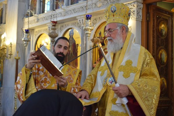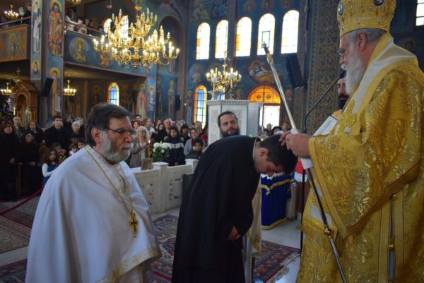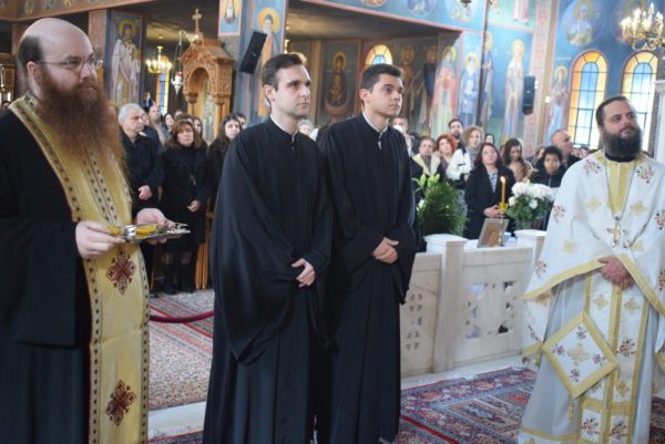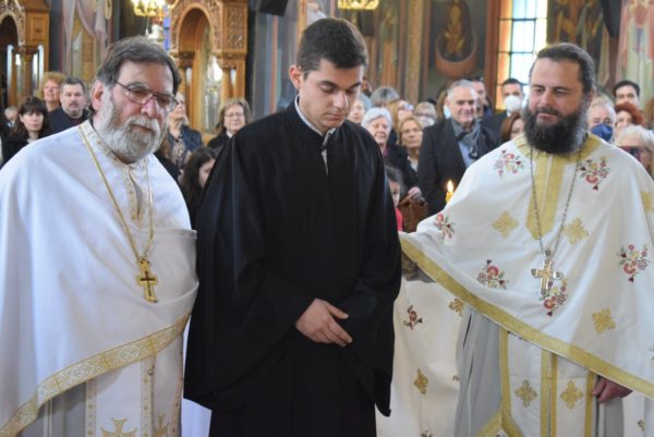 Στο τέλος της Θείας Λειτουργίας ο Σεβασμιώτατος χειροθέτησε Αναγνώστες δύο νέους που διακονούν στο ιερό βήμα και το ψαλτήριο, τους κ.κ. Παναγιώτη Κουρελή και Μιχαήλ Ζερβακάκη.