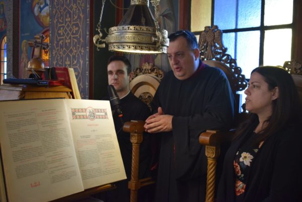Έπειτα, συμμετείχε σε συζήτηση με τους εκκλησιαζόμενους στην αίθουσα της ενορίας.