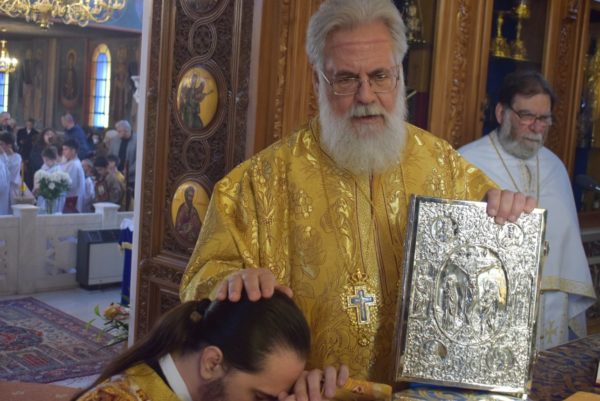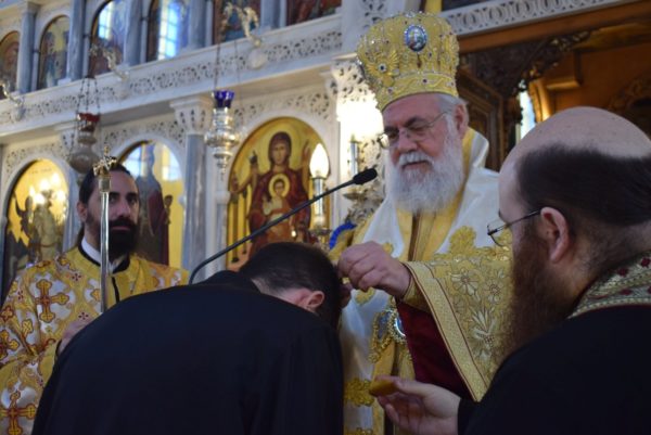 Στο τέλος της Θείας Λειτουργίας ο Σεβασμιώτατος χειροθέτησε Αναγνώστες δύο νέους που διακονούν στο ιερό βήμα και το ψαλτήριο, τους κ.κ. Παναγιώτη Κουρελή και Μιχαήλ Ζερβακάκη.