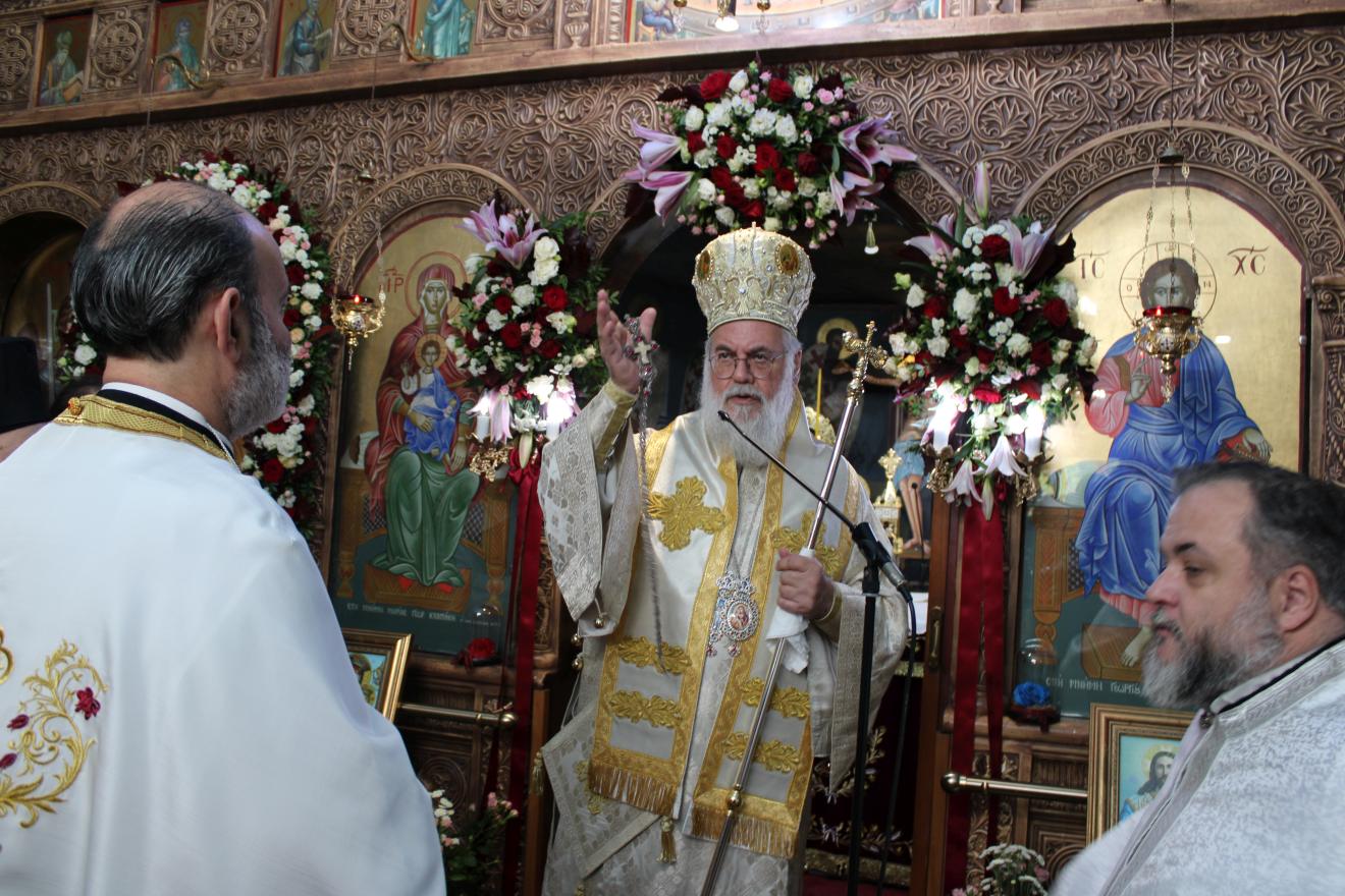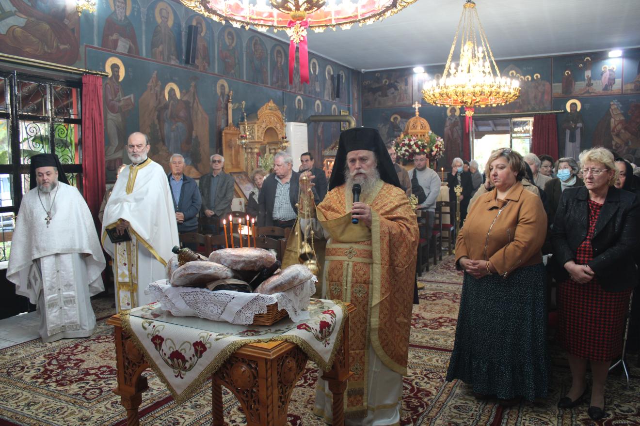 Ο Σεβασμιώτατος ιερούργησε συμπαραστατούμενος από τους Αρχιμανδρίτες Αγαθάγγελο Κόκλα – Ιεροκήρυκα της Ιεράς Μητροπόλεως Ιλίου, ο οποίος ομίλησε στο «Κοινωνικό» καταλλήλως, Τίτο Χρήστου – Αρχιερατικό Επίτροπο Φυλής και Αχαρνών, τον π. Στέφανο Γεωργαλή – Πρόεδρο του Εκκλ. Συμβουλίου του εορτάζοντος Ιερού Ναού, π. Ιωάννη Λευκαδίτη – παλαιό εφημέριο της ενορίας και τον διάκονό του π. Άγγελο Μιχαλόπουλο.
