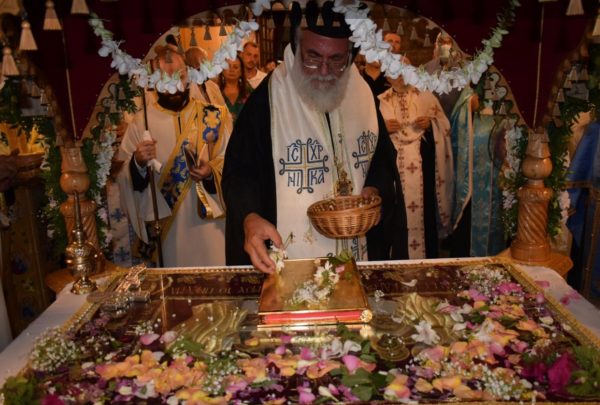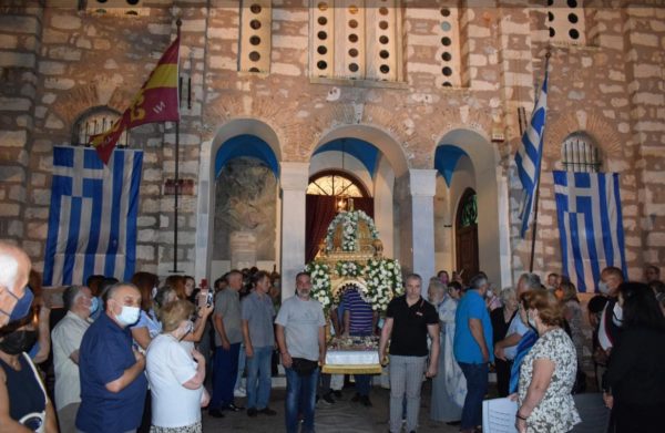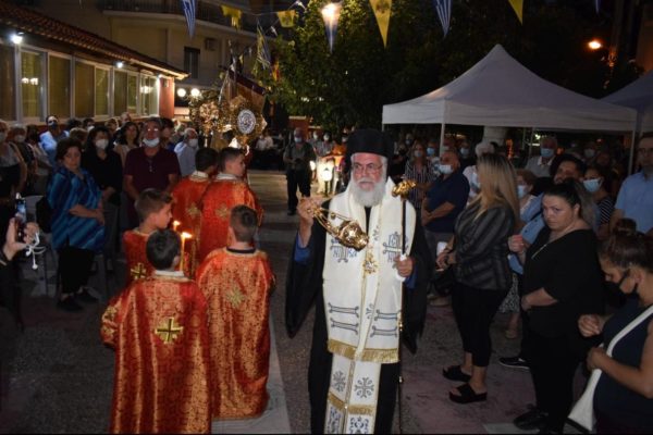 Στο τέλος της ακολουθίας του Εσπερινού επισυνάφθηκαν τα Εγκώμια στην Υπεραγία Θεοτόκο και η λιτάνευση του Επιταφίου της. Ο πρόεδρος του Εκκλησιαστικού Συμβουλίου και Αρχιερατικός Επίτροπος Αχαρνών Αρχιμ. Ιωάννης Ράπτης, απηύθυνε ευχαριστήριους λόγους προς τους παρευρισκομένους πιστούς και όσους κοπίασαν για την πραγματοποίηση της πανηγύρεως.