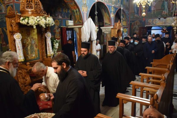 Στον πανηγυρικό εσπερινό, που τελέστηκε στην Ιερά Μονή Γενεσίου της Θεοτόκου Ντάρδιζας, χοροστάτησε ο Θεοφιλέστατος Επίσκοπος Ευρίπου κ. Χρυσόστομος, ενώ συγχοροστάτησαν οι Μητροπολίτες Πειραιώς κ. Σεραφείμ, Φθιώτιδος κ. Συμεών, Περιστερίου κ. Γρηγόριος, ο Θεοφιλέστατος Επίσκοπος Ρωγών κ. Φιλόθεος και ο εορτάζων Μητροπολίτης Ιλίου, Αχαρνών και Πετρουπόλεως κ. Αθηναγόρας.