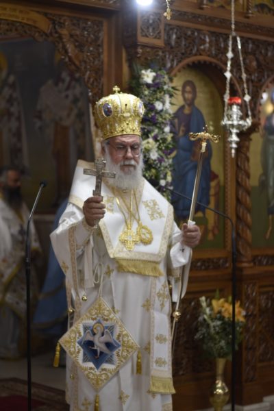 Πριν την χειροτονία ο Σεβασμιώτατος με αφορμή το σύντομο λόγο του προς χειροτονία διακόνου, αναφέρθηκε και ανέλυσε το στίχο του γ´ τροπαρίου των εσπερίων της εορτής: «Ἐν ταῖς αὐλαῖς σου ὑμνήσω σε τὸν Σωτῆρα τοῦ κόσμου, καὶ κλίνας γόνυ προσκυνήσω σου τὴν ἀήττητον δύναμιν», ο οποίος κυριολεκτεί και στη ζωή του χειροτονούμενου, επειδή από μικρό παιδί βρέθηκε στις αυλές του ναού των αγίων Αποστόλων στην Νίκαια υπό την καθοδήγηση του πνευματικού του Αρχιμ. Ιακώβου Δελλή.