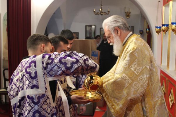 Στο τέλος της Ακολουθίας ο Σεβασμιώτατος μίλησε για την σημασία της εορτής και ευχήθηκε σε όλους τους παρισταμένους πιστούς καλή δύναμη για την περίοδο της Μεγάλης Τεσσαρακοστής, ενώ αυτοί προσκυνούσαν τον τίμιο σταυρό που κρατούσε στο χέρι του.