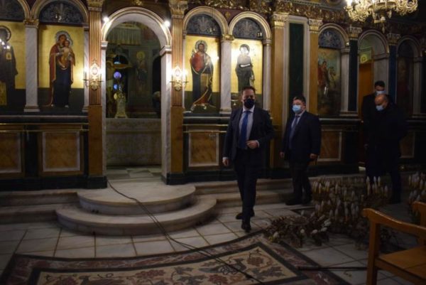 Ακολούθησε επίσκεψη τους, στον Ιερό Ναό του Αγίου Βλασίου, στην κεντρική πλατεία των Αχαρνών, προκειμένου ο κ. Υπουργός να διαπιστώσει την κατάσταση στην οποία βρίσκεται ο Ιερός Ναός, το μέγεθος και την έκταση των ζημίων.