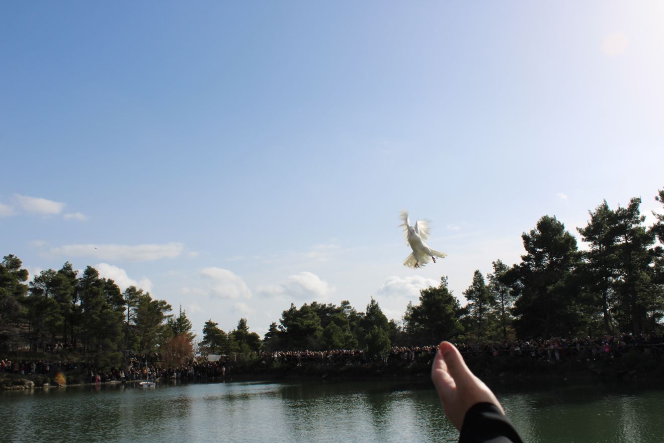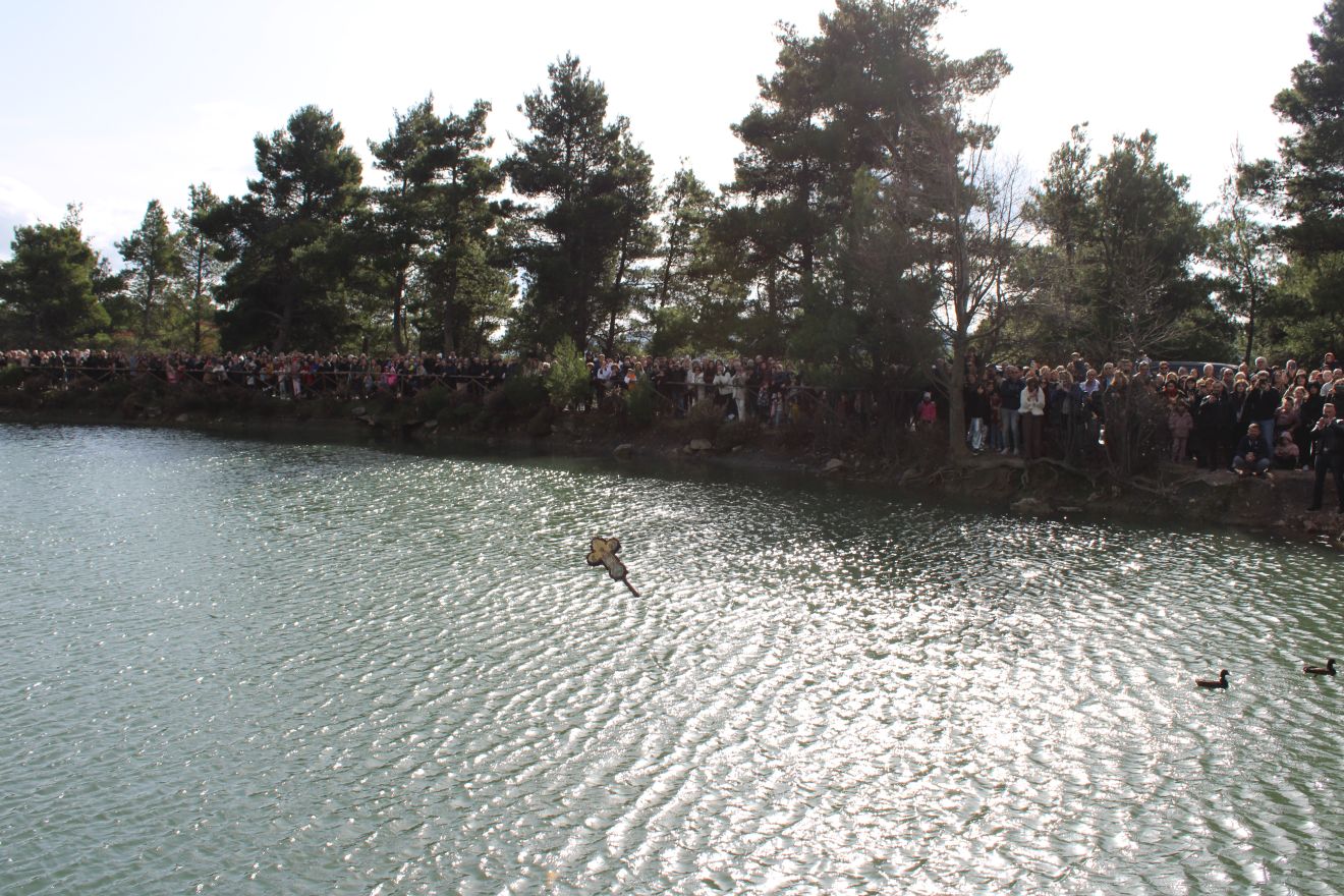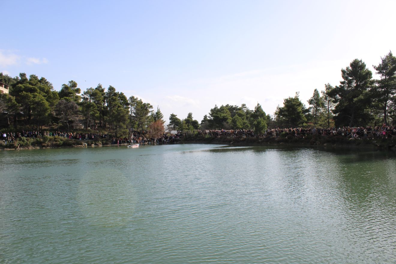 Στη λίμνη συναγωνίσθηκαν για την λήψη του Τιμίου Σταυρού μικρή ομάδα αγοριών.