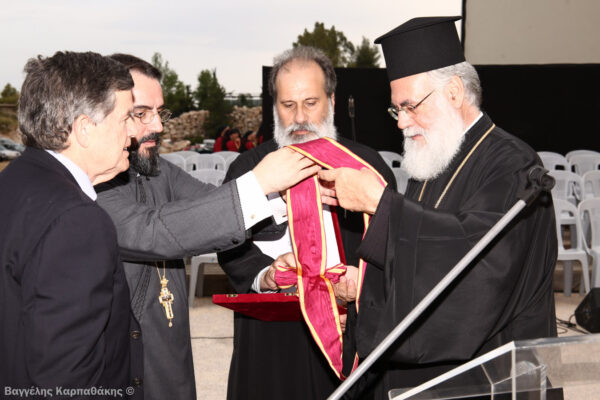 Κατόπιν κάλεσε στο βήμα τον Σεβασμιώτατο Μητροπολίτη Ιλίου κ.κ. ΑΘΗΝΑΓΟΡΑ, ο οποίος έπειτα από μία σύντομη και εμπνευσμένη εισήγηση βράβευσε με τον Μεγάλο Σταυρό του Αγίου Βλασίου, τον Αξιότιμο Δωρητή και Ευεργέτη κ. Αθανάσιο Μαρτίνο, Εφοπλιστή.