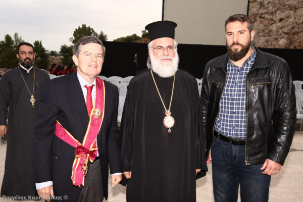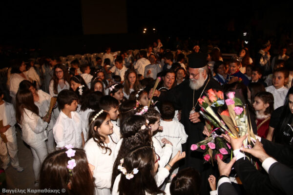 Ακολούθησε ο ενθουσιώδης χαιρετισμός του Πανοσιολογιωτάτου Αρχιμανδρίτου κ. Νικοδήμου Αθανασίου, Πρωτοσυγκέλλου της Ιεράς Μητροπόλεως, ο οποίος παρομοιάζοντας την καλλιέργεια της νεολαίας από την Εκκλησία με την σμίλευση της πέτρας για την κατασκευή του θεάτρου, ώστε να μεταβληθεί σε χώρο πολιτισμού, συνεχάρη και ευχαρίστησε τους παρόντες και όσους συνέβαλλαν στην εκδήλωση.