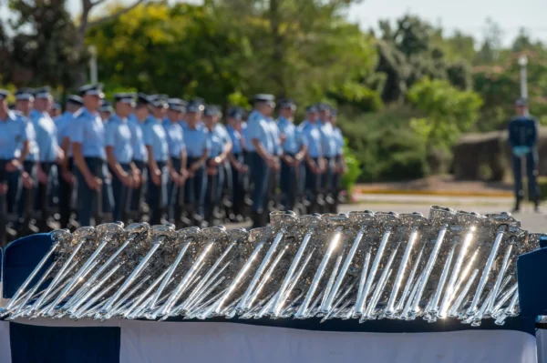 Τα ξίφη στους νέους Αξιωματικούς επέδωσε η Πρόεδρος της Ελληνικής Δημοκρατίας Αικατερίνη Σακελλαροπούλου, παρουσία του Υπουργού Προστασίας του Πολίτη Νότη Μηταράκη, ως εκπροσώπου της Κυβέρνησης, του Υφυπουργού Προστασίας του Πολίτη Κωνσταντίνου Κατσαφάδου, του Γενικού Γραμματέα Δημοσίας Τάξης Μιχαήλ Καραμαλάκη, του Γενικού Γραμματέα Αντεγκληματικής Πολιτικής Κωνσταντίνου Παπαθανασίου και του Αρχηγού της Ελληνικής Αστυνομίας, Αντιστράτηγου Λάζαρου Μαυρόπουλου.